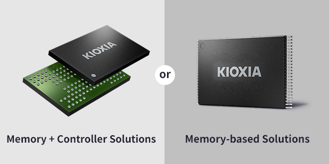 The KIOXIA family of high-capacity embedded flash memory devices, consisting of UFS (Universal Flash Storage) and e-MMC, integrate KIOXIA memory solutions and a controller into a single package. KIOXIA's managed flash memory solutions help customers simplify system development, reduce host processor workload, shorten time to market, and improve ease of use.